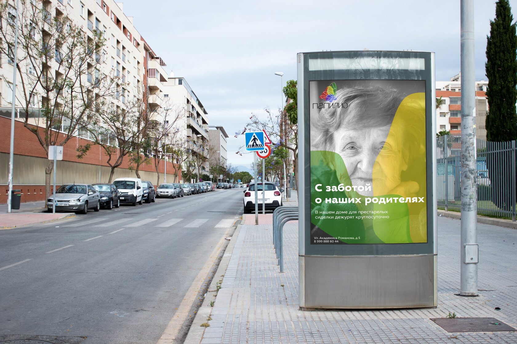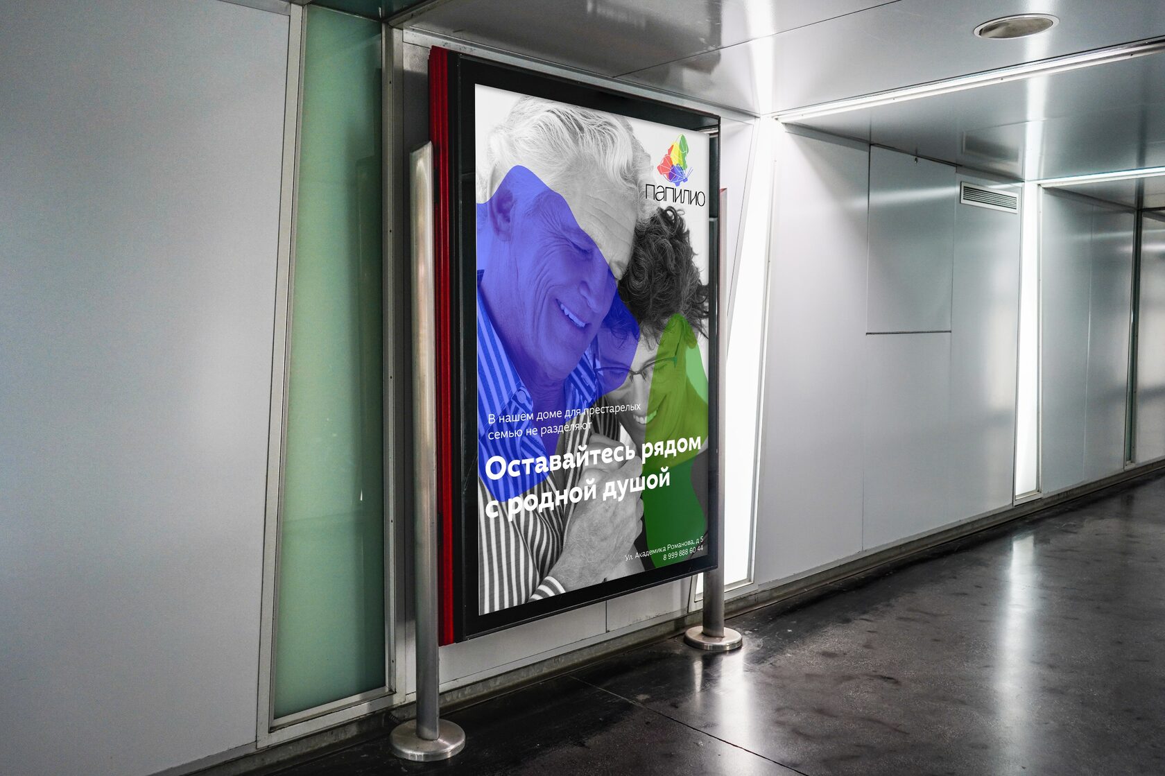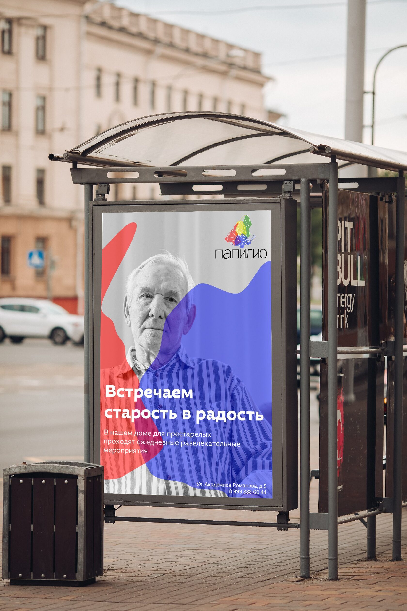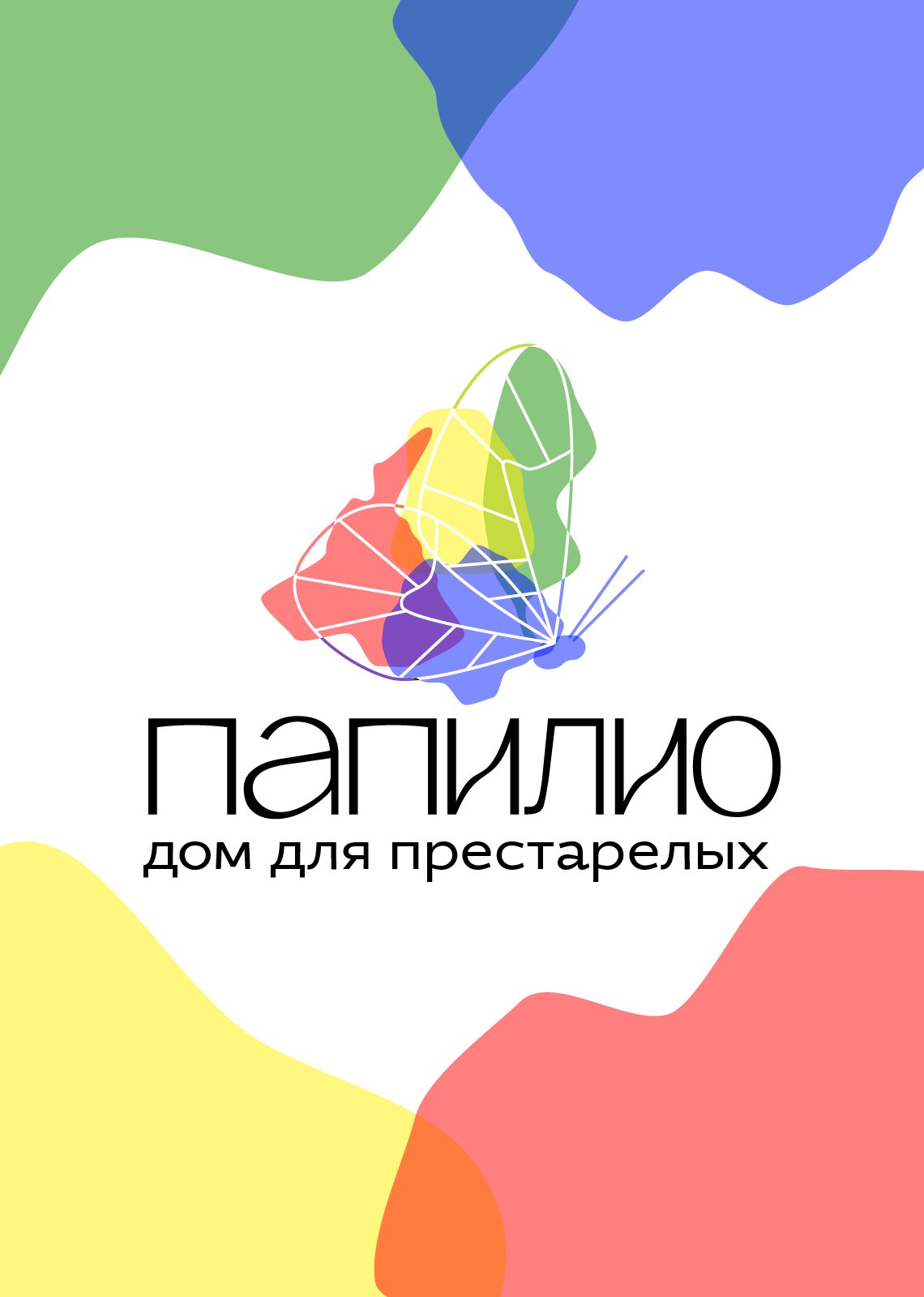 Айдентика дома для престарелых. Цвета отражают краски жизни, их наложение деает еще больше оттенков.